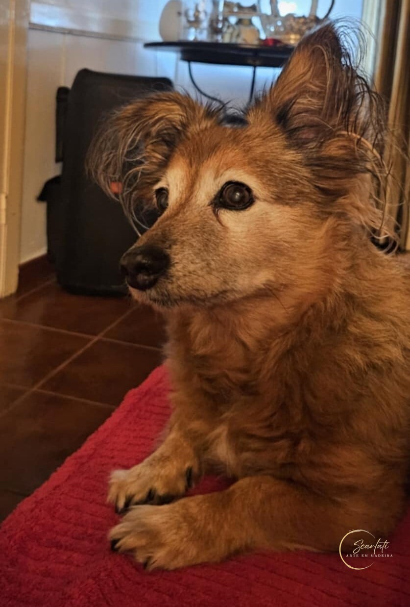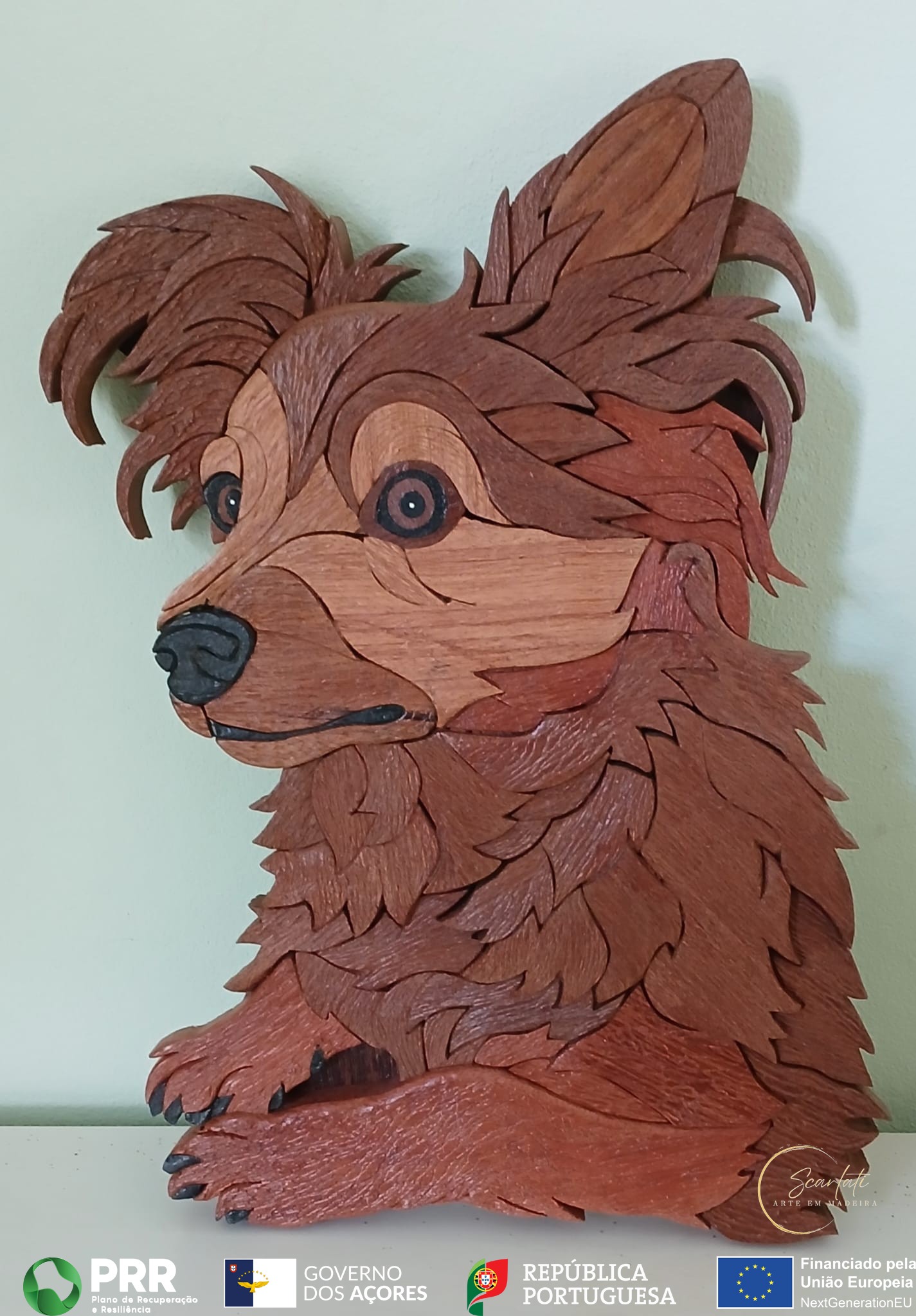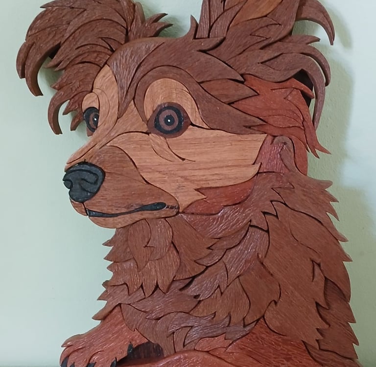 Esta intarsia foi criada como homenagem à Vicky, companheira fiel que fez parte da sua família durante 16 anos. Mais do que uma representação, esta obra é um gesto de gratidão e carinho por todos os momentos partilhados.